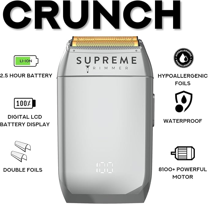 Supreme Trimmer Crunch STF602 – Waterproof Double Foil Shaver for Men | 150 Min Runtime, Wet/Dry Cordless & Corded Electric Razor | Hypoallergenic Foils for Face, Head & Stubble