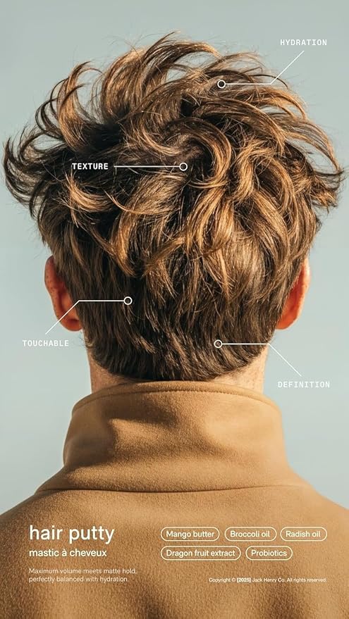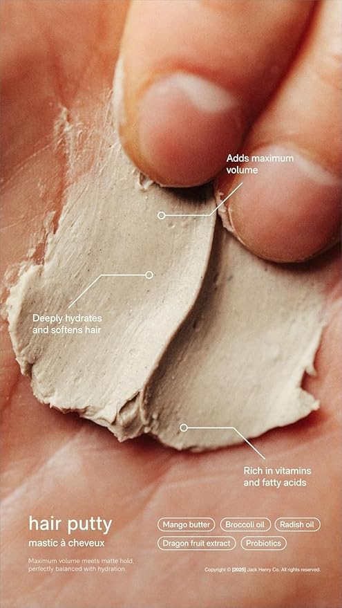Jack Henry Hair Putty – Natural Matte Finish Styling Paste for Men – Medium Hold, Lightweight, Non-Greasy – With Mango Butter & Broccoli Seed Oil for Nourishment – 1.7 oz
