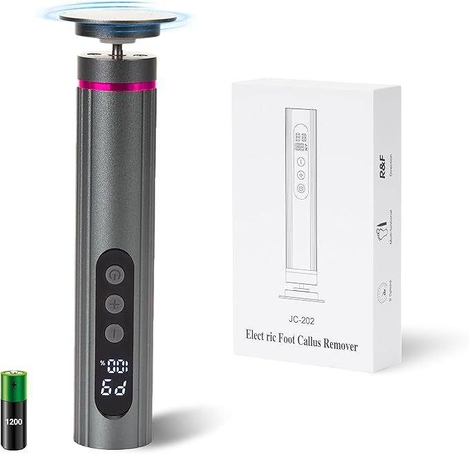 - 【New look upgrade】A new look upgrade of the dark gray electric foot callus remover, the texture design of the handheld part makes it easier to hold, and an LED display has been added. The speed of the electric foot callus remover can be adjusted from level 1 to level 9. You can adjust the appropriate speed to remove calluses on your feet. When using the machine, please do not apply too much pressure, otherwise it may cause the machine to be unable to rotate and damage the machine.