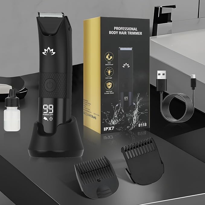 - IPX7 WATERPROOF WET&DRY USE - The body trimmer features an IPX7-rated waterproof design, enabling versatile wet or dry shaving. This makes it ideally suited for use in the shower or with shaving cream.Its waterproof construction also makes cleaning a breeze—simply rinse it under running water after use for quick and hassle-free maintenance.
