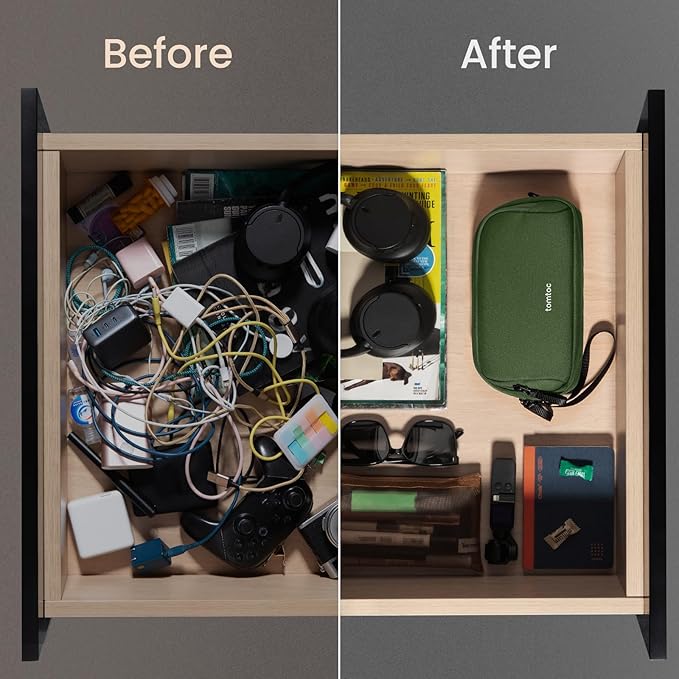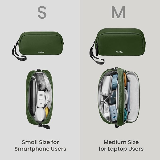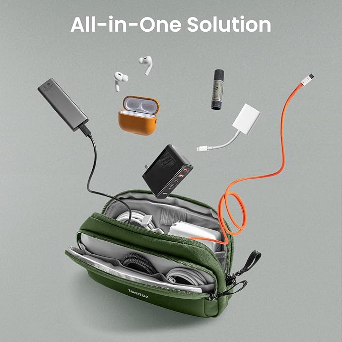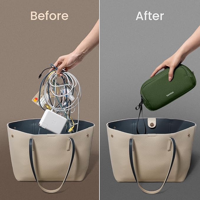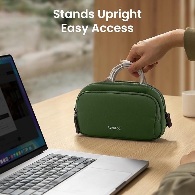 - Convenient & Portable: Designed for portability, the tomtoc tech and travel pouch keep your essentials organized and within reach, fitting seamlessly into a backpack, tote, or handbag, and can stand upright on a desk to grab items easily
