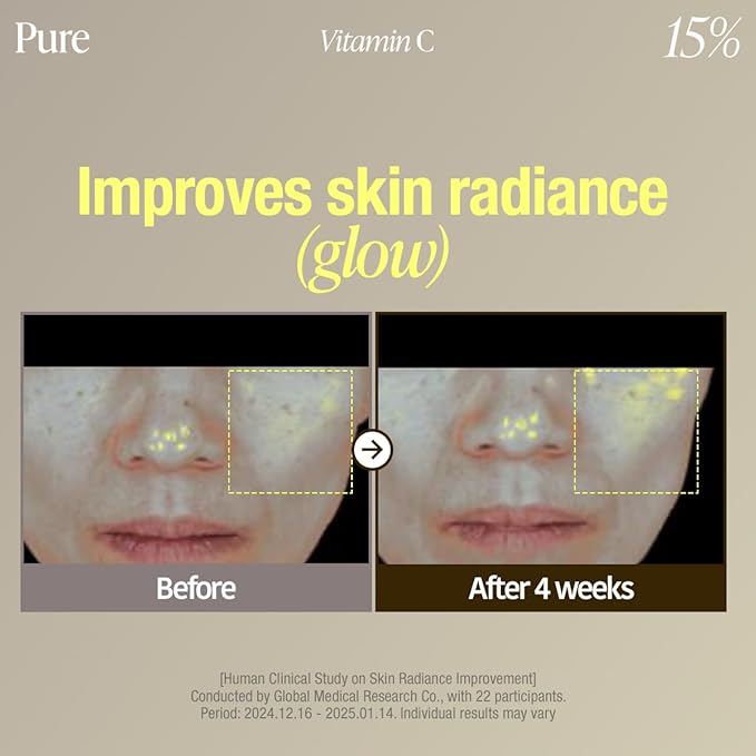 - [15% Pure Vitamin C for Visible Results] Infused with 15% pure Vitamin C, this concentrated ampoule delivers targeted care for a brighter, more even skin tone. Experience the benefits of enhanced moisture, improved skin clarity, and a revitalized complexion—all in one formula.