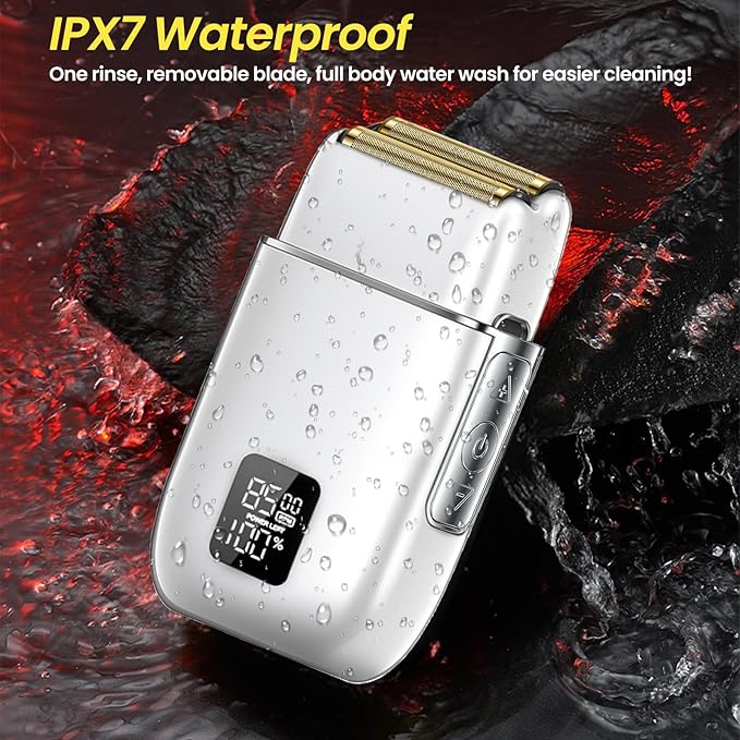 - 【IPX7 Waterproof and Wet/Dry Shaving】The shavers for men removable aluminum foil head with IPX7 waterproof design supports wet and dry double shaving and shower use, the head can be rinsed and cleaned directly with a faucet, and rough and hard beards can be trimmed before shaving, ensuring a hygienic and convenient shaving experience, making it the perfect and ideal companion when traveling on business