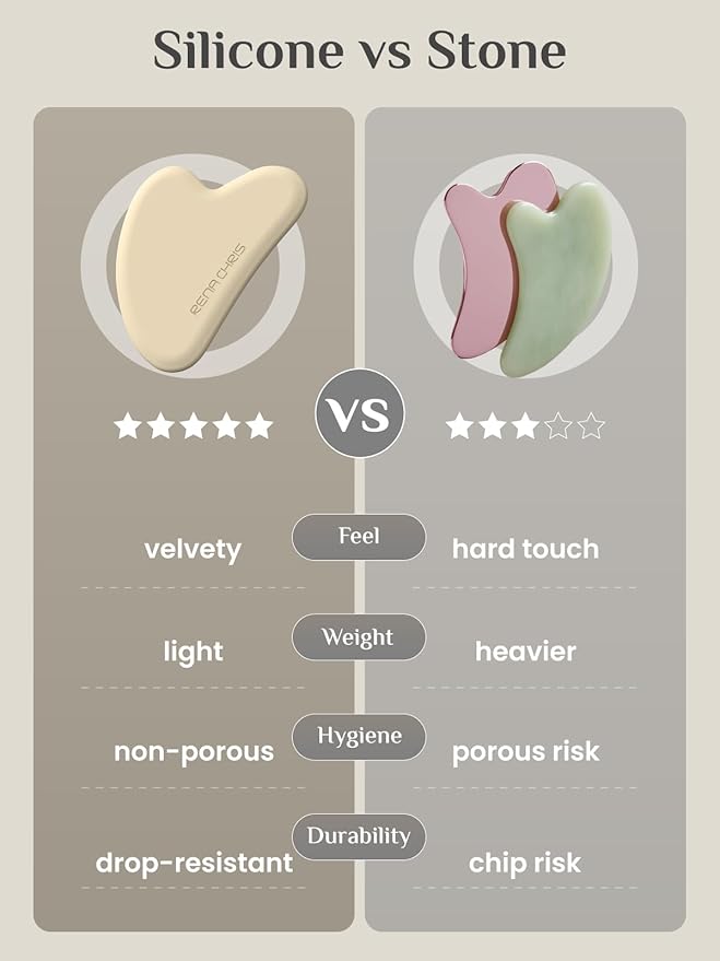 Rena Chris Gua Sha Facial Tools, Silicone Guasha Tool for Face and Neck Acupuncture, Facial Manual Massager Tool for Jawline Sculpting and Puffiness Reducing, Skincare Gift for Women