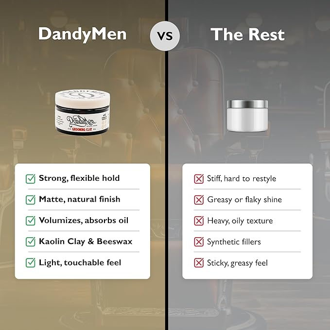 - STRONG, FLEXIBLE HOLD - Create sharp styles or relaxed, textured looks. DandyMen Grooming Clay keeps your hair in place with natural movement that lasts all day.