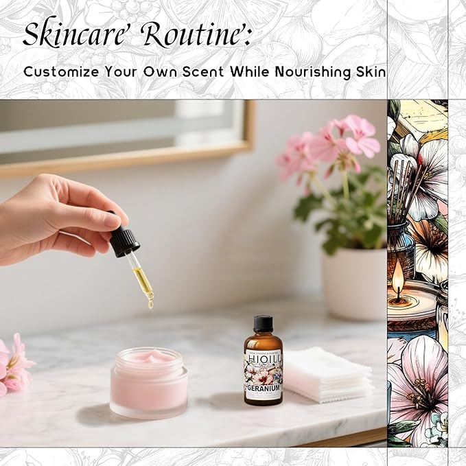 HIQILI Geranium Fragrance Oil for Home Diffuser, Relaxation, Essential Oil for Candle & Soap Making, Long-Lasting Scents, Car Freshies - 1 Fl Oz