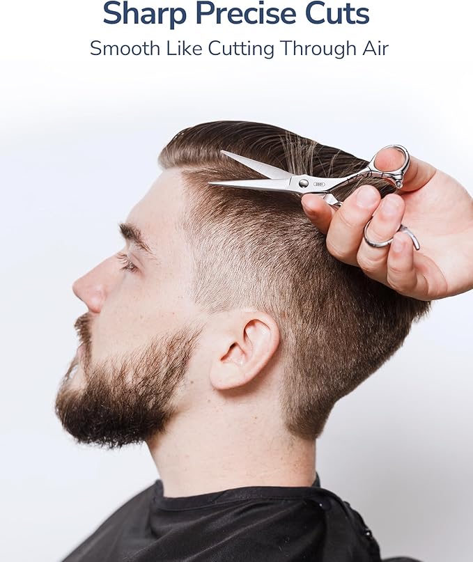 - Professional Home & Salon Use: From beginners to professionals, these shears get the job done. Perfect for barbershops, salons, or home use, they handle everything from quick trims to detailed styling work. The razor-sharp blades and smart design make it easy to get salon-quality results—no matter your experience level.