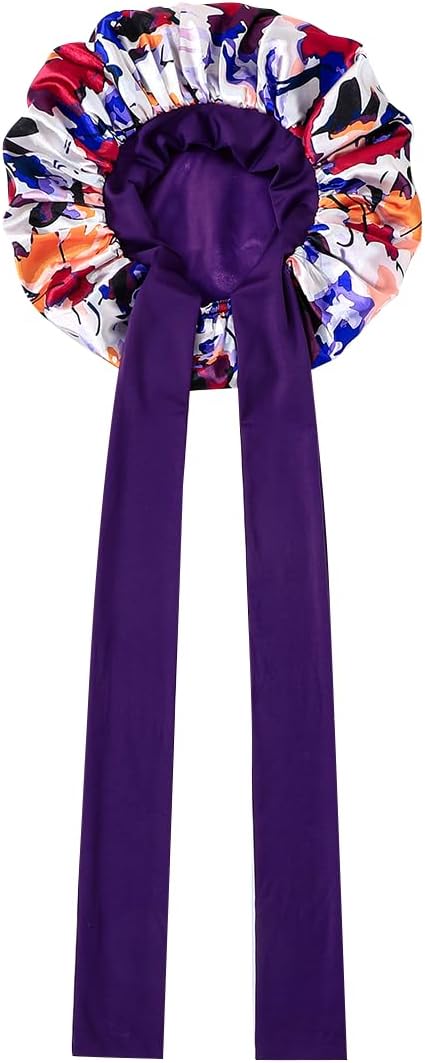 - 🌙One Size Fits Most with Adjustable, Extra-Long Tie Band : Designed to fit head sizes comfortably, this women sleeping hair bonnet features an extra-wide and ultra-long stretchy tie band that adapts perfectly to your head shape. With its generous size and adjustable design, it easily accommodates curly hair, braids, afros, wigs, or straight styles — making it perfect for all hair types and styles.