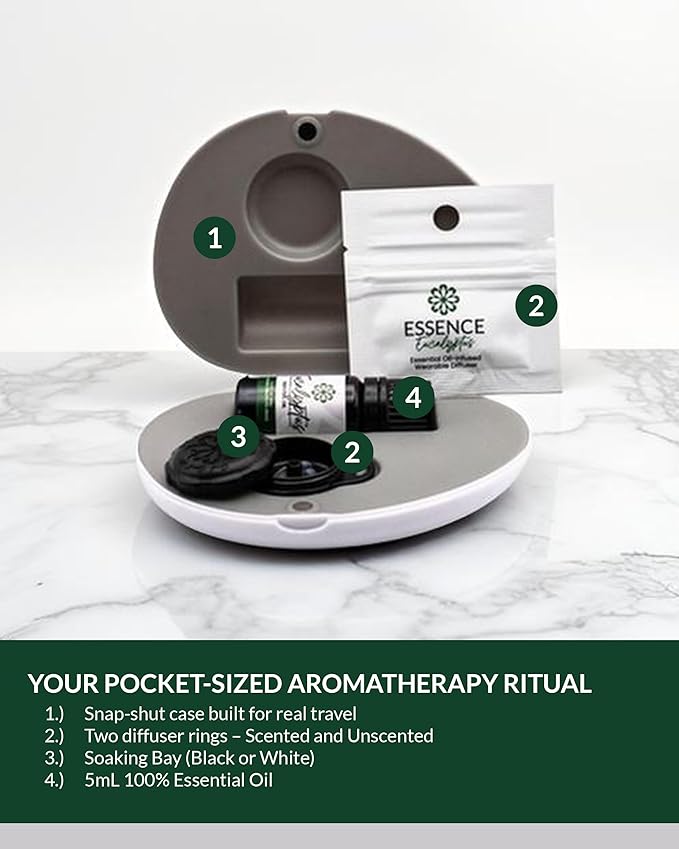 Essence Pearl Travel Case - Wearable Aromatherapy Kit with Nasal Diffuser Rings, Soaking Bay, and 5mL Essential Oil – Portable Wellness Gift Set for On?The?Go Self Care