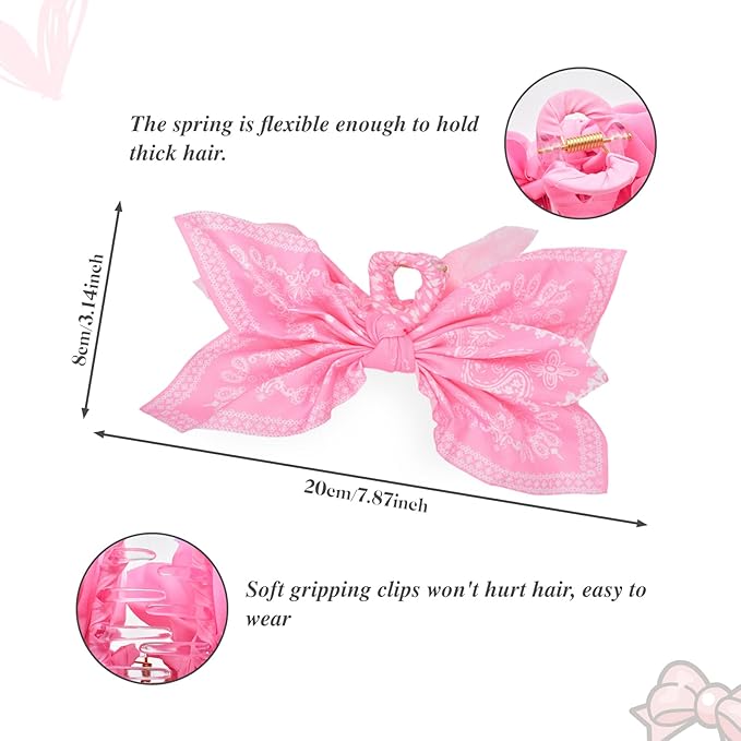- Non-Slip:Women's bow hair clips measuring at 7.87 inches in length and 3.14 inches in height,Hadutrek bow claw clips offer the perfect size for comfortably securing different hair volumes