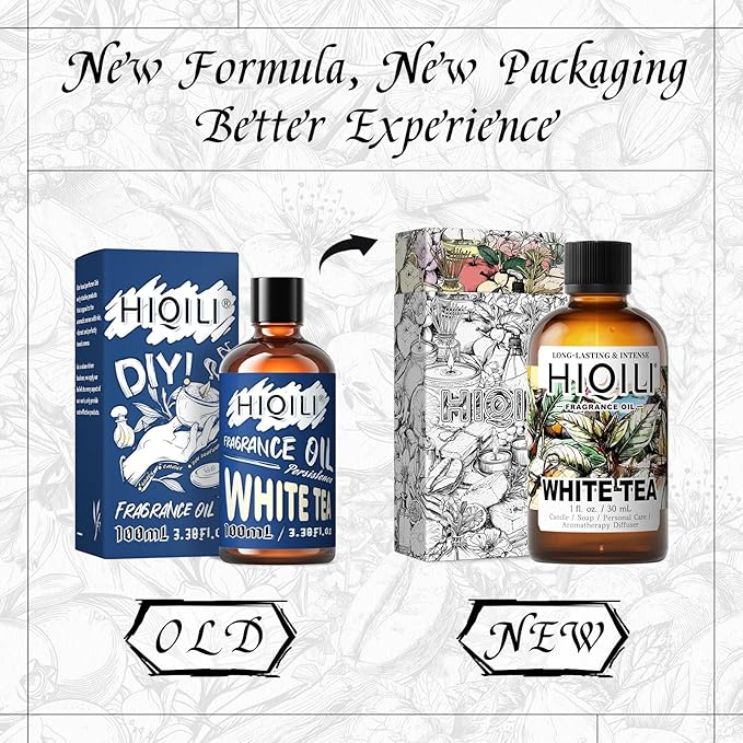 HIQILI White Tea Fragrance Oil for Essential Oil Diffuser, DIY Candle & Soap Making, Blend to Perfume & Air Freshener Spray - 1 Fl Oz