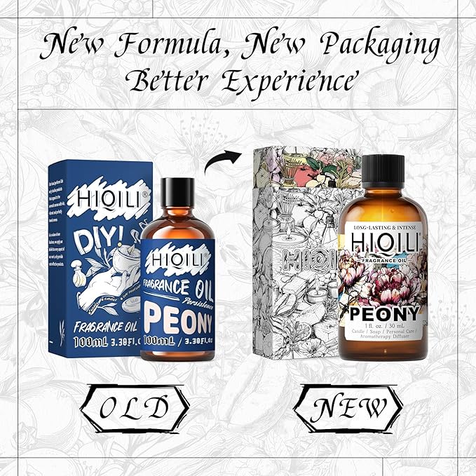 HIQILI Peony Fragrance Oil for Home Diffuser, Idea for Making Candle, Women's Perfume, Car Air Freshener, Skin & Body Care - 1 Fl Oz