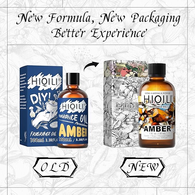 HIQILI Amber Fragrance Oil for Candle, Perfume, Soap Making, Hotel Scents for Essential Oil Diffuser & Aromatherapy - 1 Fl Oz