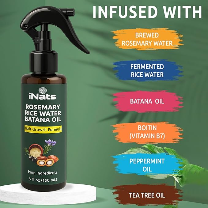 - REDUCE HAIR LOSS & SCALP NOURISHMENT: This iNats hair growth oil spray is infused with rich ingredients and vitamin B, strengthens hair from the root, helps reduce hair fall and nourishes the scalp. Perfect for reviving thinning hair, this rice water and rosemary hair spray increases blood flow for stronger strands and lasting shine—your go-to solution for fuller hair.