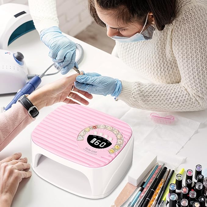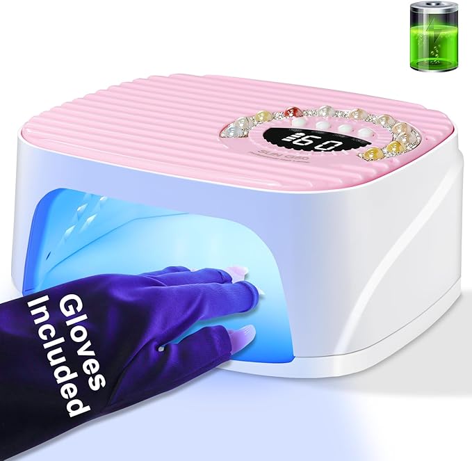 - 【Cures All Gel Polishes】This uv nail lamp for gel nails effectively cures all types of gel polishes, such as base coat, top coat, color gel, hard gel, poly gel, acrylic resins, etc. This rechargeable nail dryer is the ideal gift for Christmas, Valentine's Day, Birthday, and Wedding Anniversary. Enjoy a salon experience with your friends and family at home.