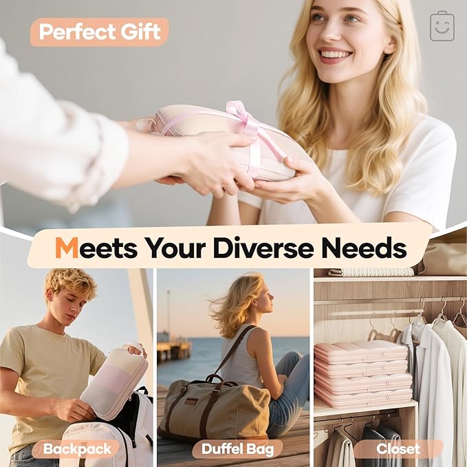 - Space-Saving Compression - Simply zip the compression zippers to reduce volume—no extra tools needed. Maximize luggage space efficiently, allowing you to pack more with less bulk for a lighter travel experience.