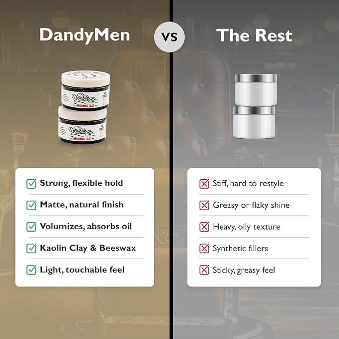 - STRONG, FLEXIBLE HOLD - Create sharp styles or relaxed, textured looks. DandyMen Grooming Clay keeps your hair in place with natural movement that lasts all day.