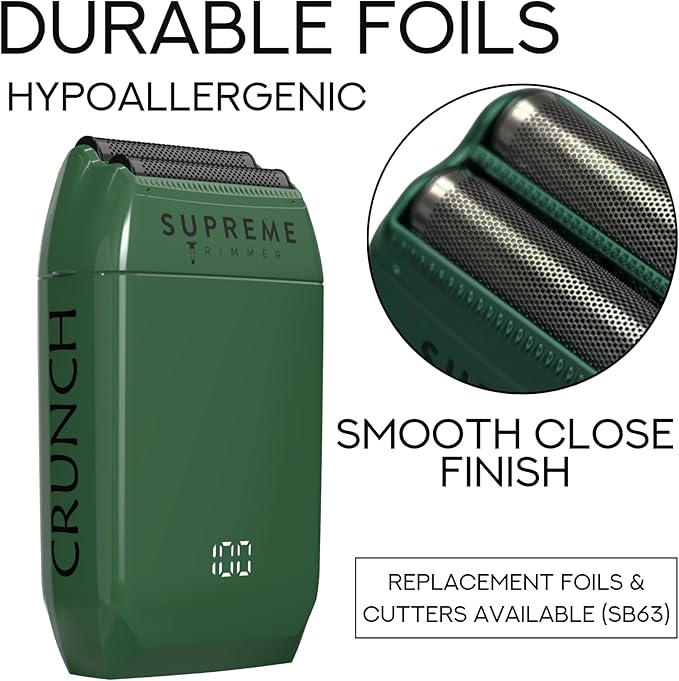 Supreme Trimmer Crunch STF602 – Waterproof Double Foil Shaver for Men | 150 Min Runtime, Wet/Dry Cordless & Corded Electric Razor | Hypoallergenic Foils for Face, Head & Stubble