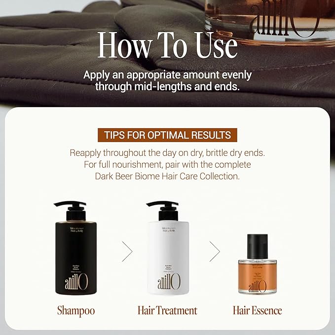 - NOURISHMENT FROM ROOT TO TIPS. Let your hair drink in the quiet strength of nutrient-rich German Dark Beer. This Korean hair essence helps restore, nourish, and repair dry, damaged hair from root to tips, leaving it soft, silky, and manageable. Enjoy a smooth, glossy, vibrant finish that refreshes every strand.