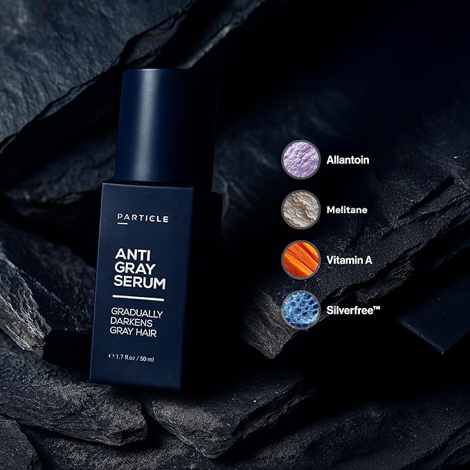 Particle Anti-Gray Serum for Men – Gradually Reduces Gray Hair on Head & Beard Without Dye – Natural Gray Reduction with Silverfree™, Vitamin A, Melitane & Allantoin – Peroxide & Ammonia Free