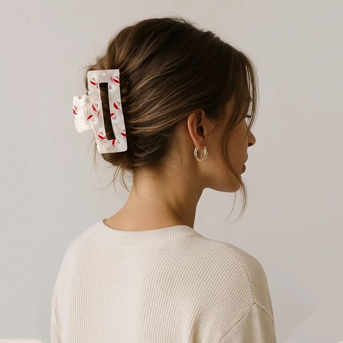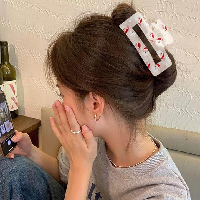 Christmas Hair Clips, Xmas Santa Claus Claw Clips, Rectangular Large Hair Claw Clips for Thick/Thin Hair, Transparent Father Christmas Design Medium Hairpin, Cute Hair Accessories