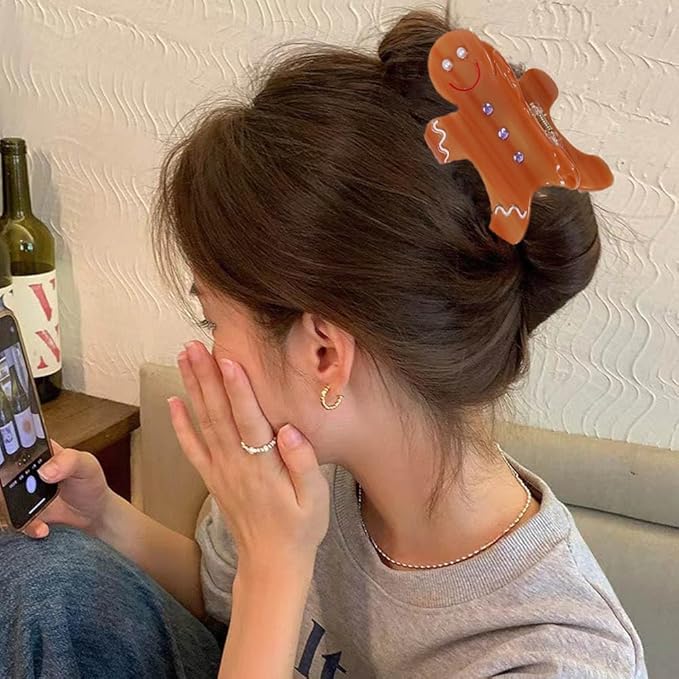 1pc Gingerbread Man Hair Clip, Xmas Acetic Acid Claw Clips, Large Hair Claw Clips for Thick/Thin Hair, Cute Brown Gingerbread Design Medium Hairpin, Sparkling Hair Accessories for Christmas Decor